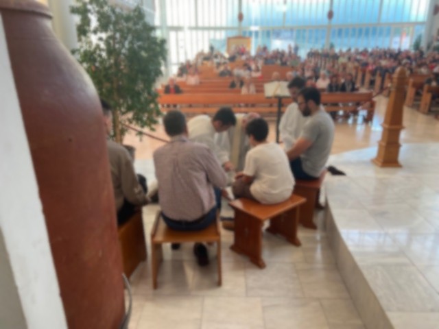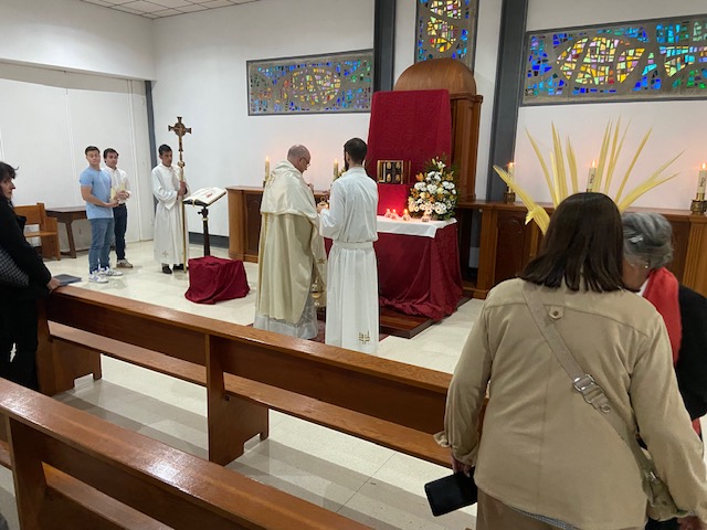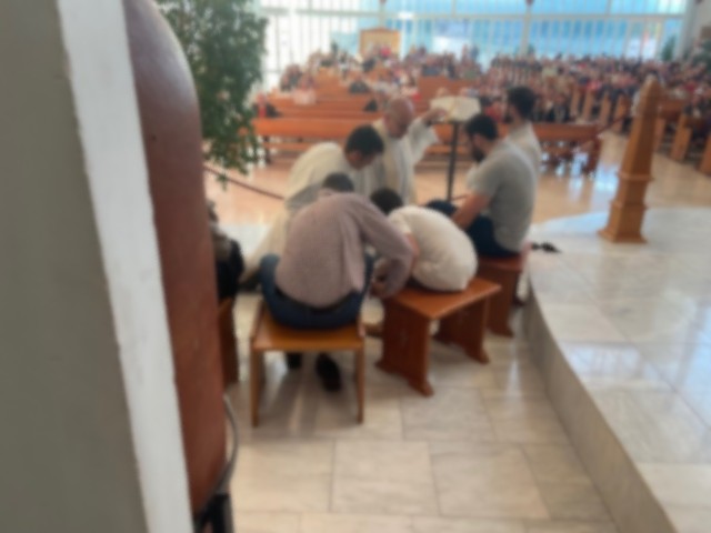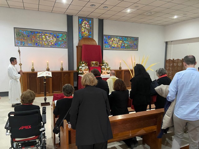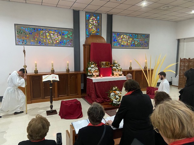 En este día tan señalado, hemos celebrado la Cena del Señor, conmemorando especialmente los momentos clave del Jueves Santo. Destacamos el lavatorio de pies, conmemorando ese acto llevado a cabo por Jesucristo con sus Apóstoles para darnos ejemplo de la necesidad de servirnos con humildad unos a otros. También conmemoramos solemnemente la institución de la Eucaristía. Al finalizar los Santos oficios del Jueves Santo, se trasladó el Santísimo a la capilla, dando así inicio a la adoración que duró durante toda la noche gracias a la presencia de varios fieles especialmente devotos que se organizaron para asistir cada uno a distintas horas para velar al Santísimo.